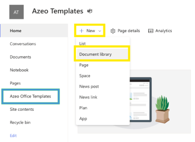 Skapa ett Team i Teams som heter "Templates", skapa ett nytt dokumentbibliotek (detta är för att general-mappen inte ska synas i Office-apparna)