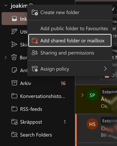 - Välj Lägg till delad mapp eller postlåda